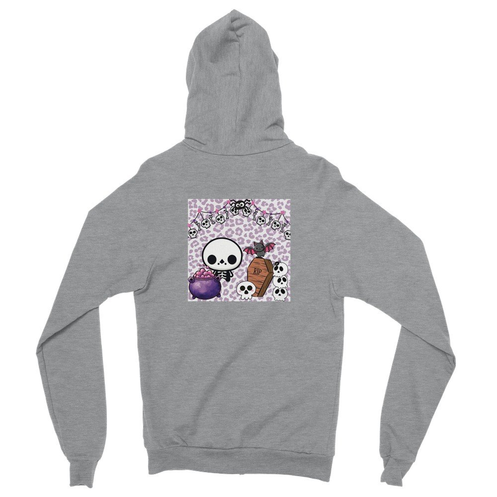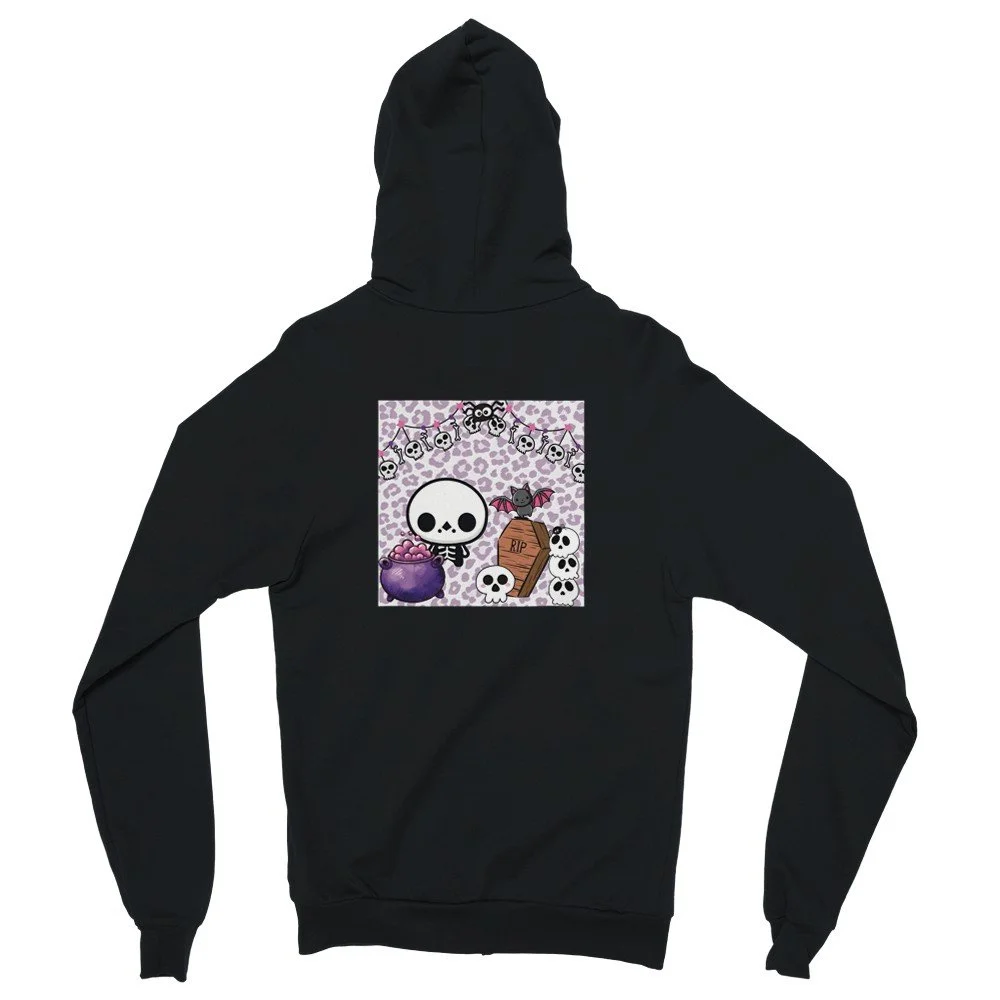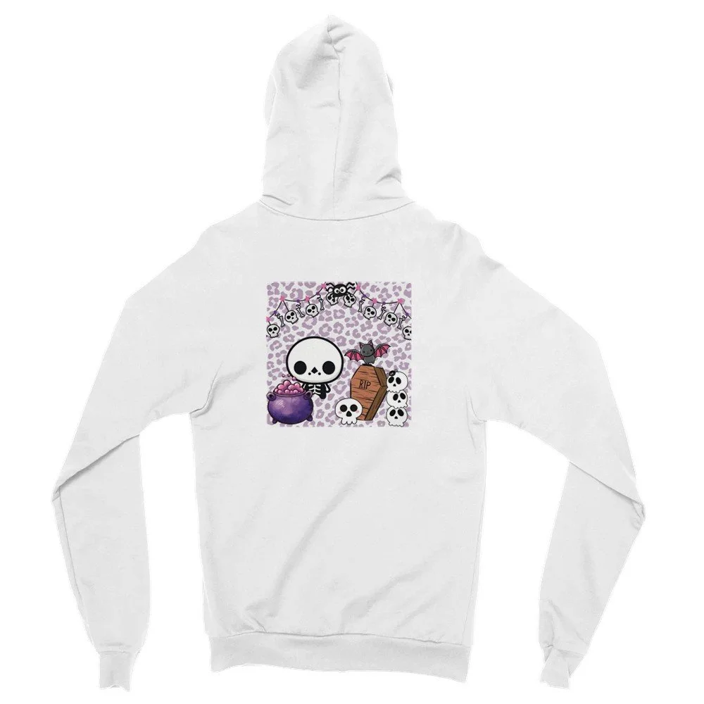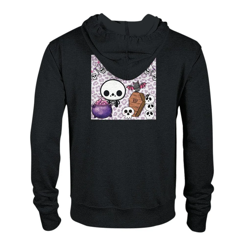 Süßer Horror-Look: Skull-Icon vorne, buntes Skelett-Design hinten.