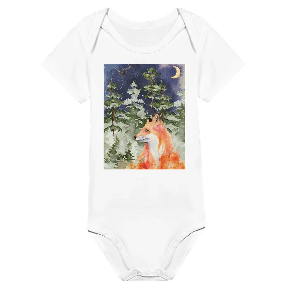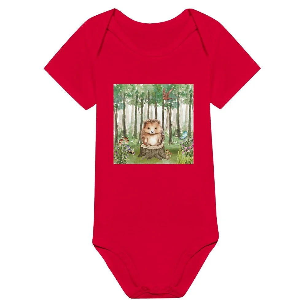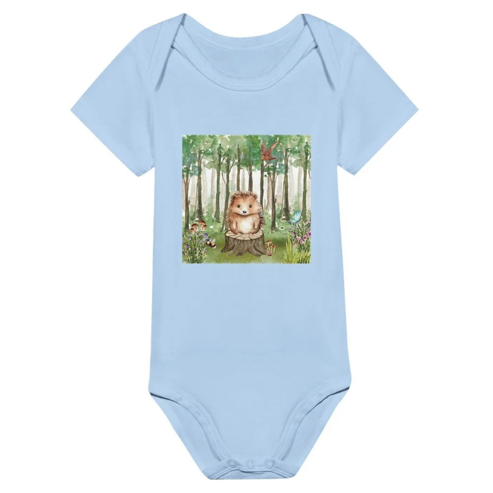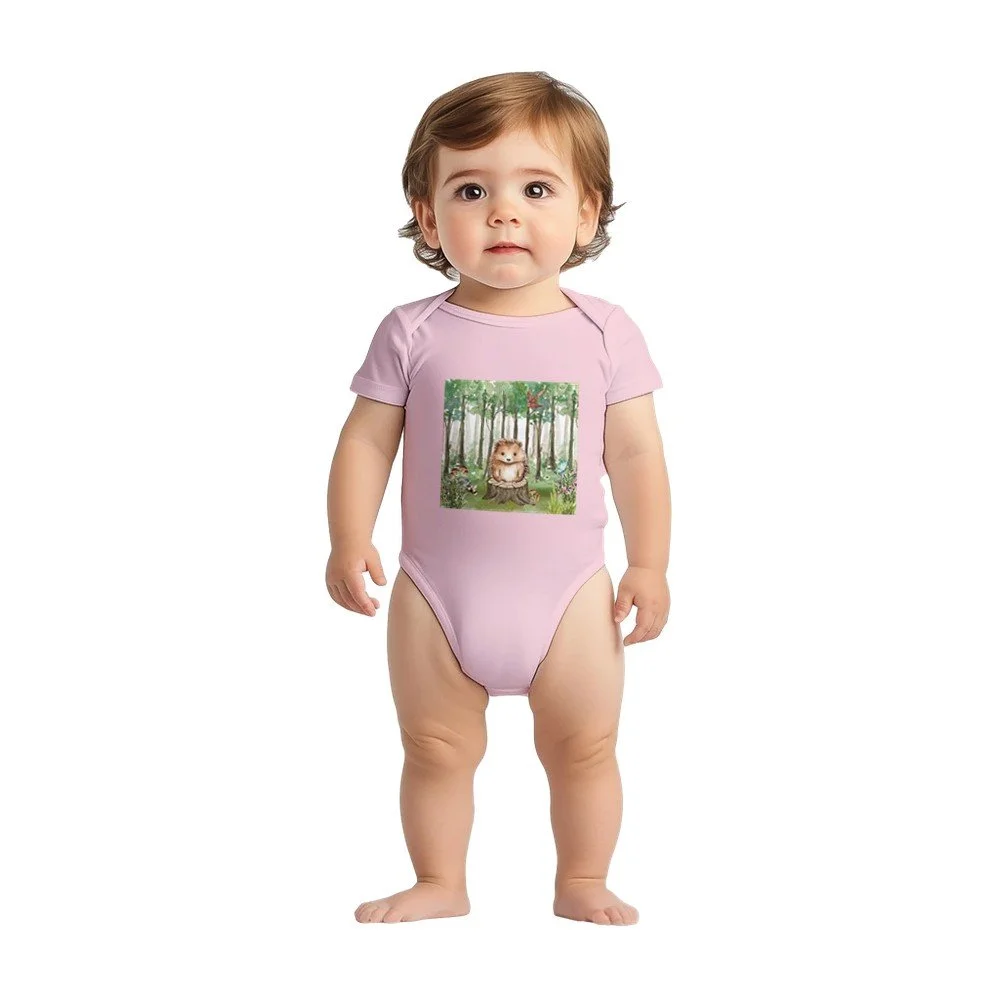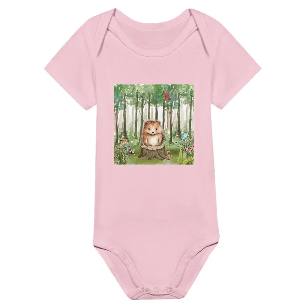 Kurzärmeliger Strampler mit Rundhalsausschnitt. Die überlappende Schulterpartie und die Beinöffnungen machen es dem Baby leicht, hinein- und herauszukommen.