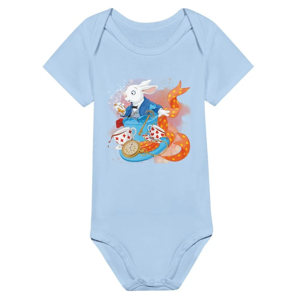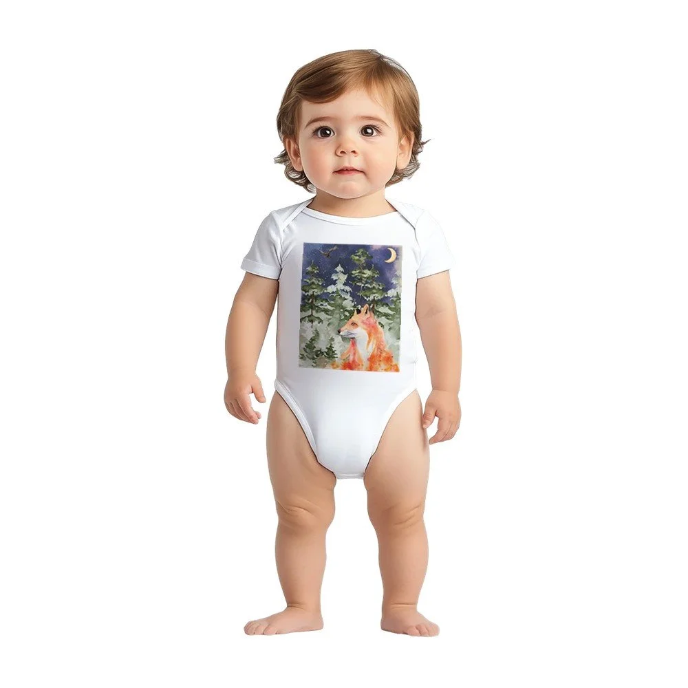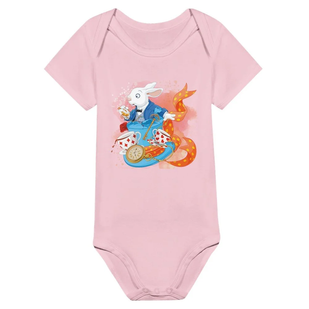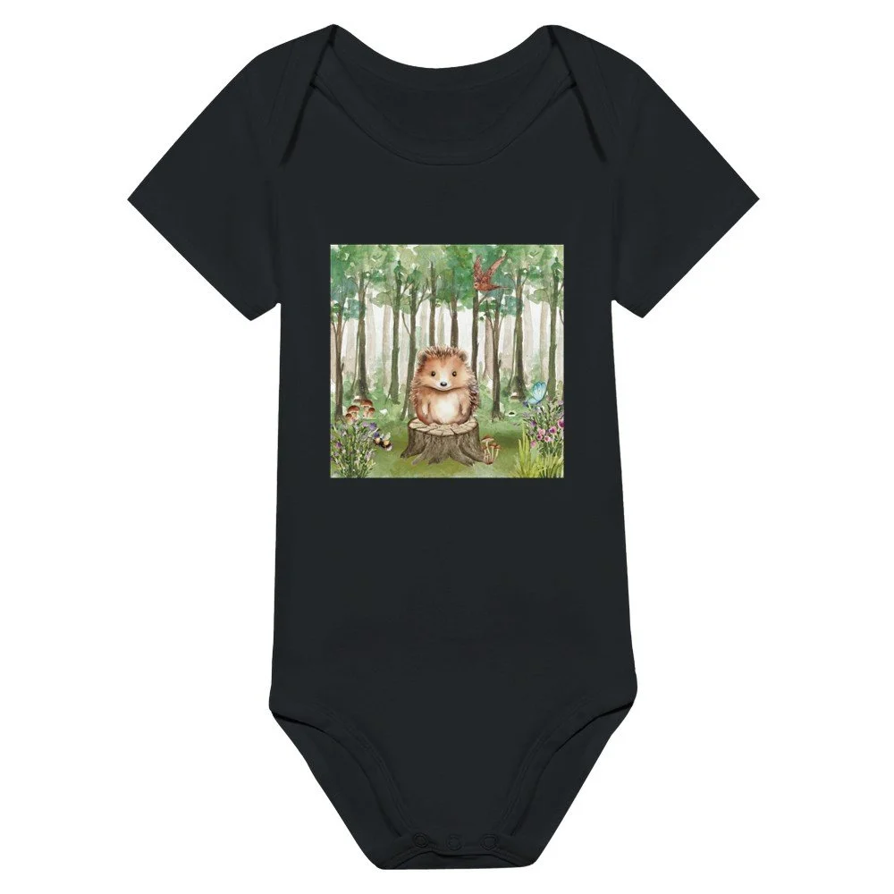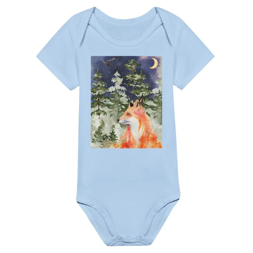 Kurzärmeliger Strampler mit Rundhalsausschnitt. Die überlappende Schulterpartie und die Beinöffnungen machen es dem Baby leicht, hinein- und herauszukommen.