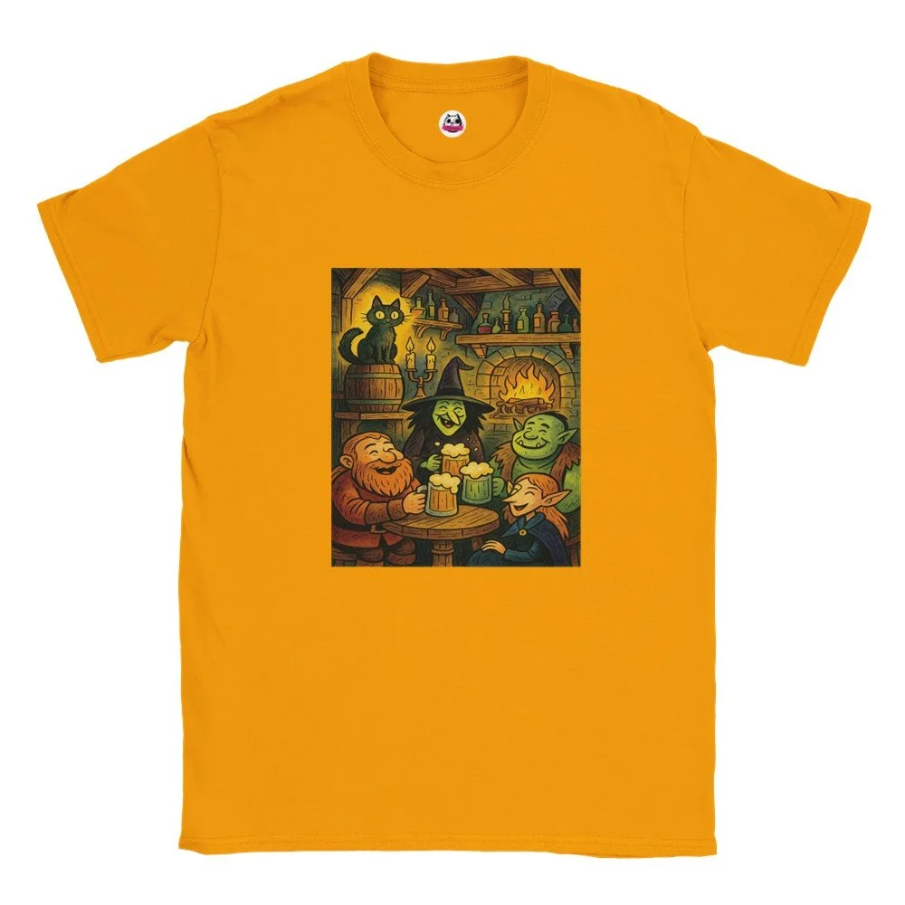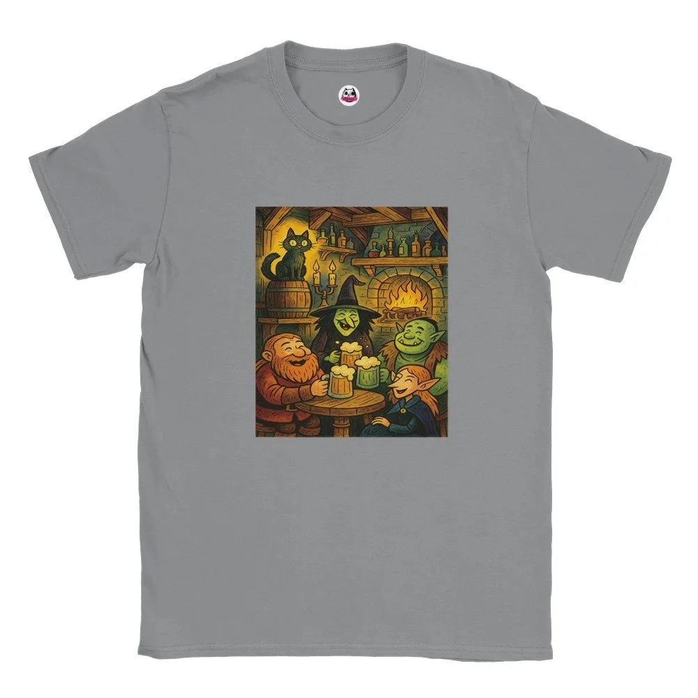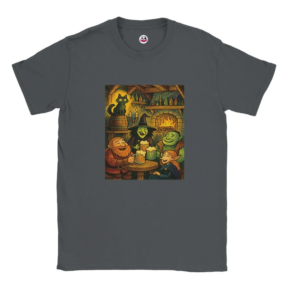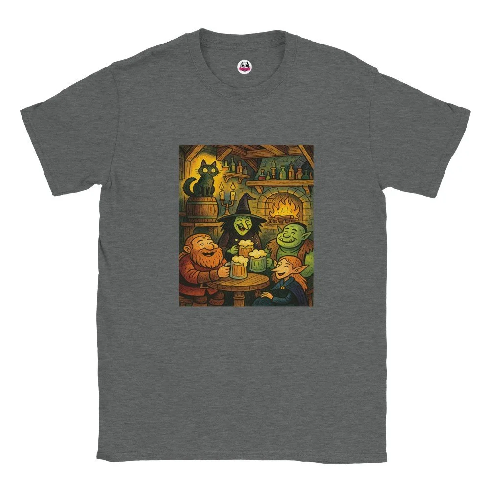 Perfekt für Fantasy-Fans: Hexe, Troll und Zwerg beim Feiern in einer Taverne.
