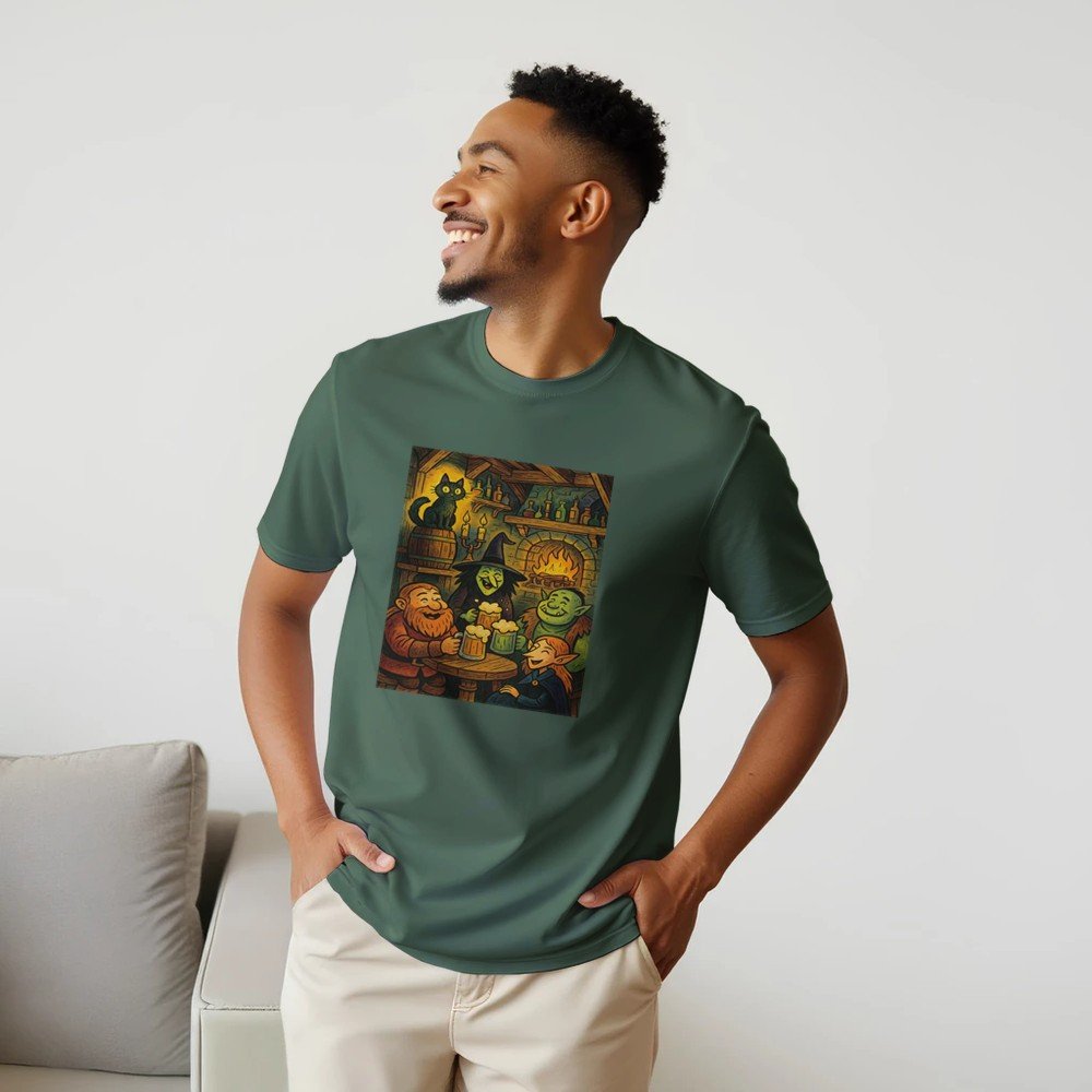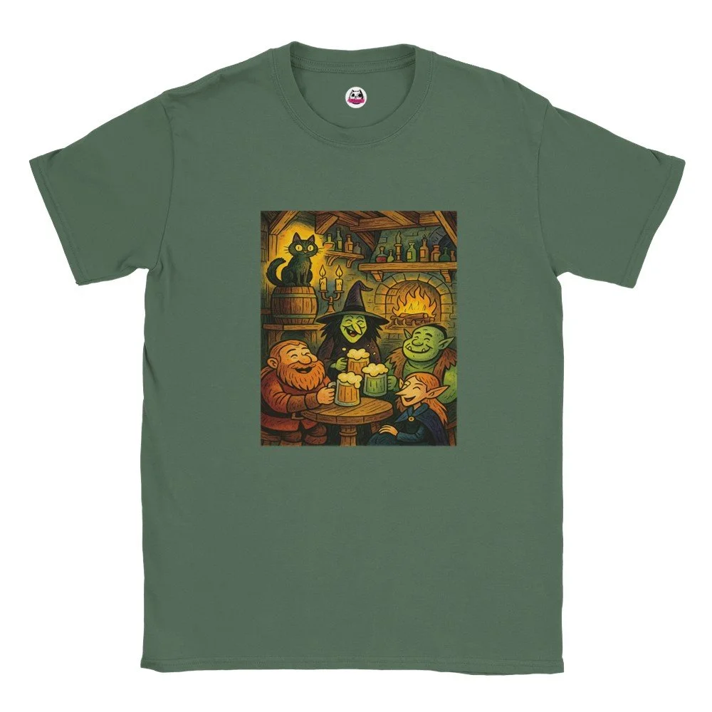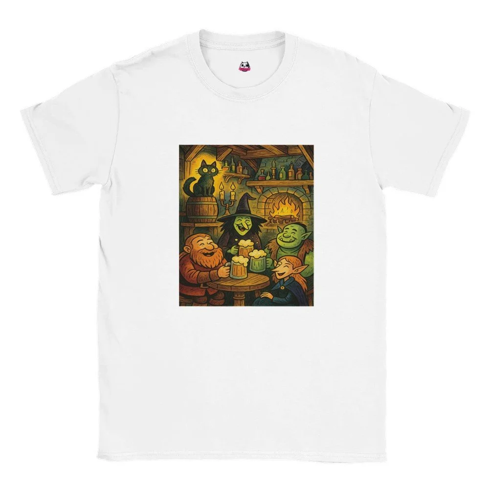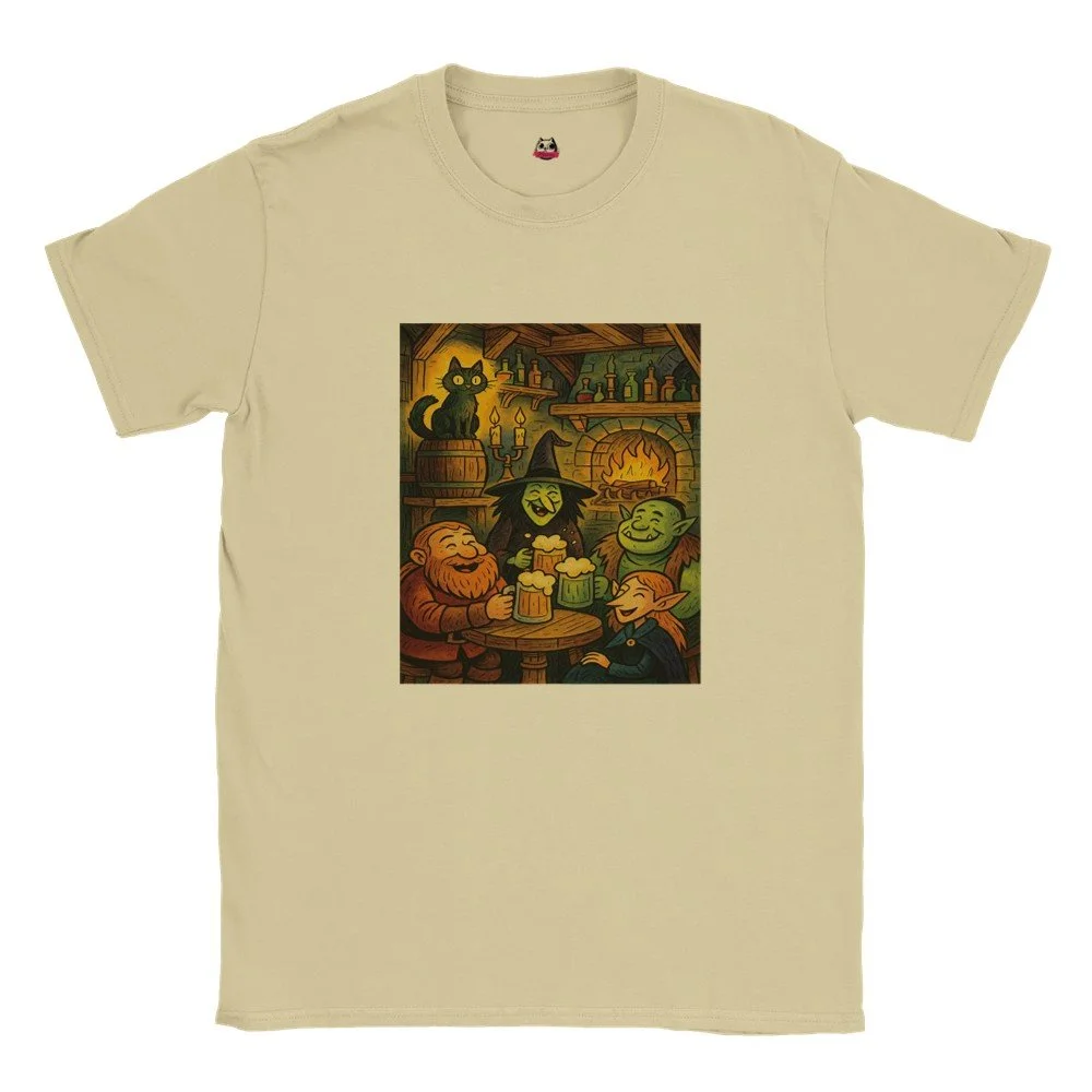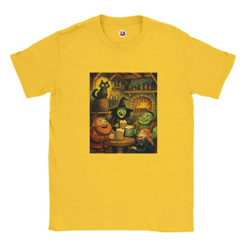 Perfekt für Fantasy-Fans: Hexe, Troll und Zwerg beim Feiern in einer Taverne.