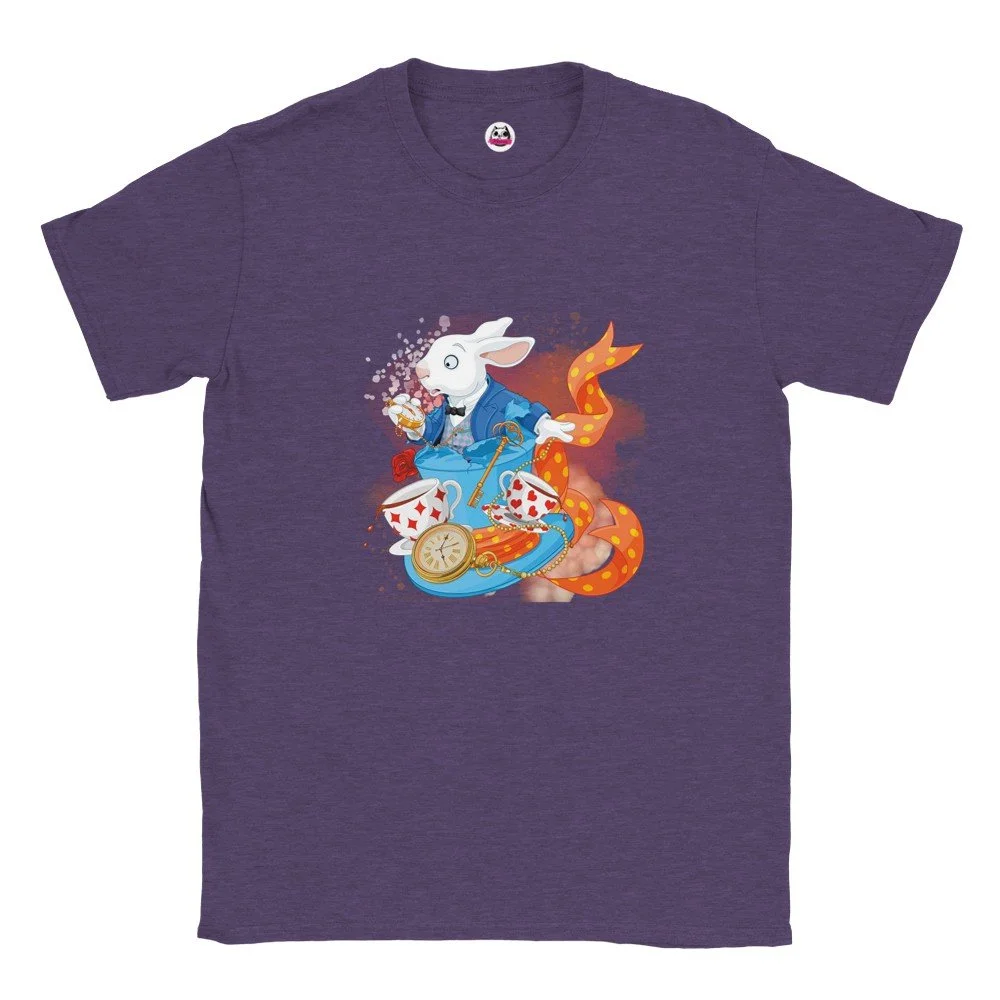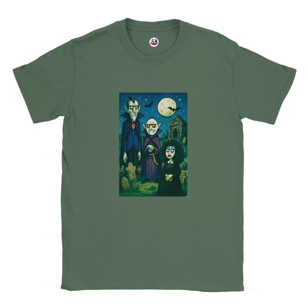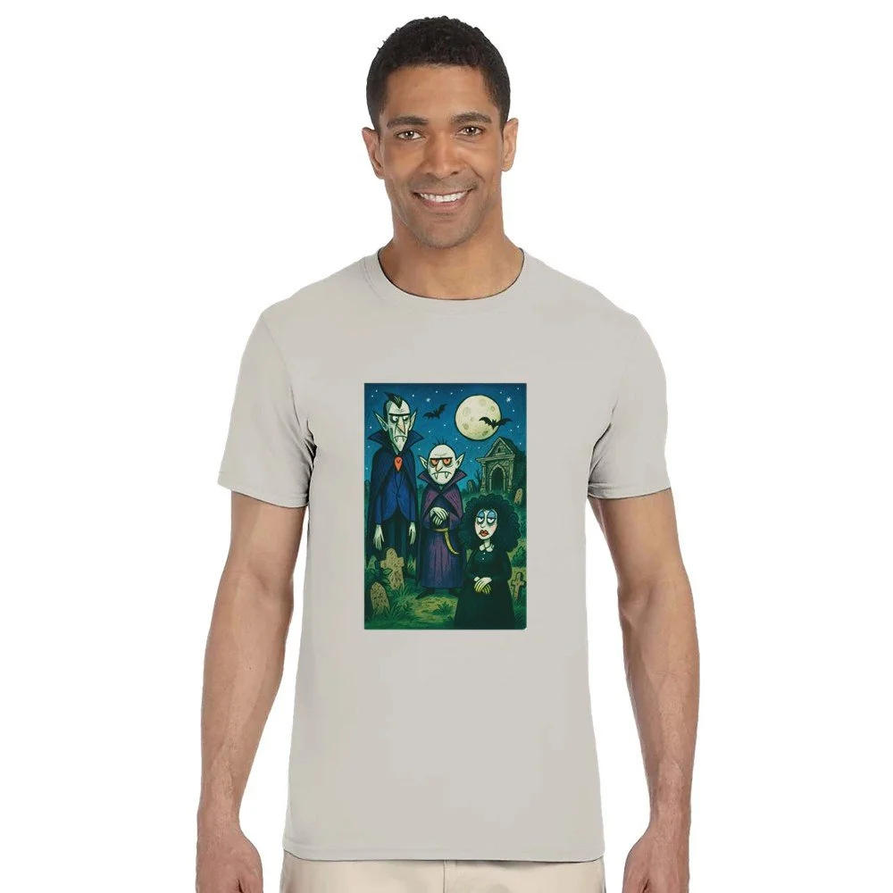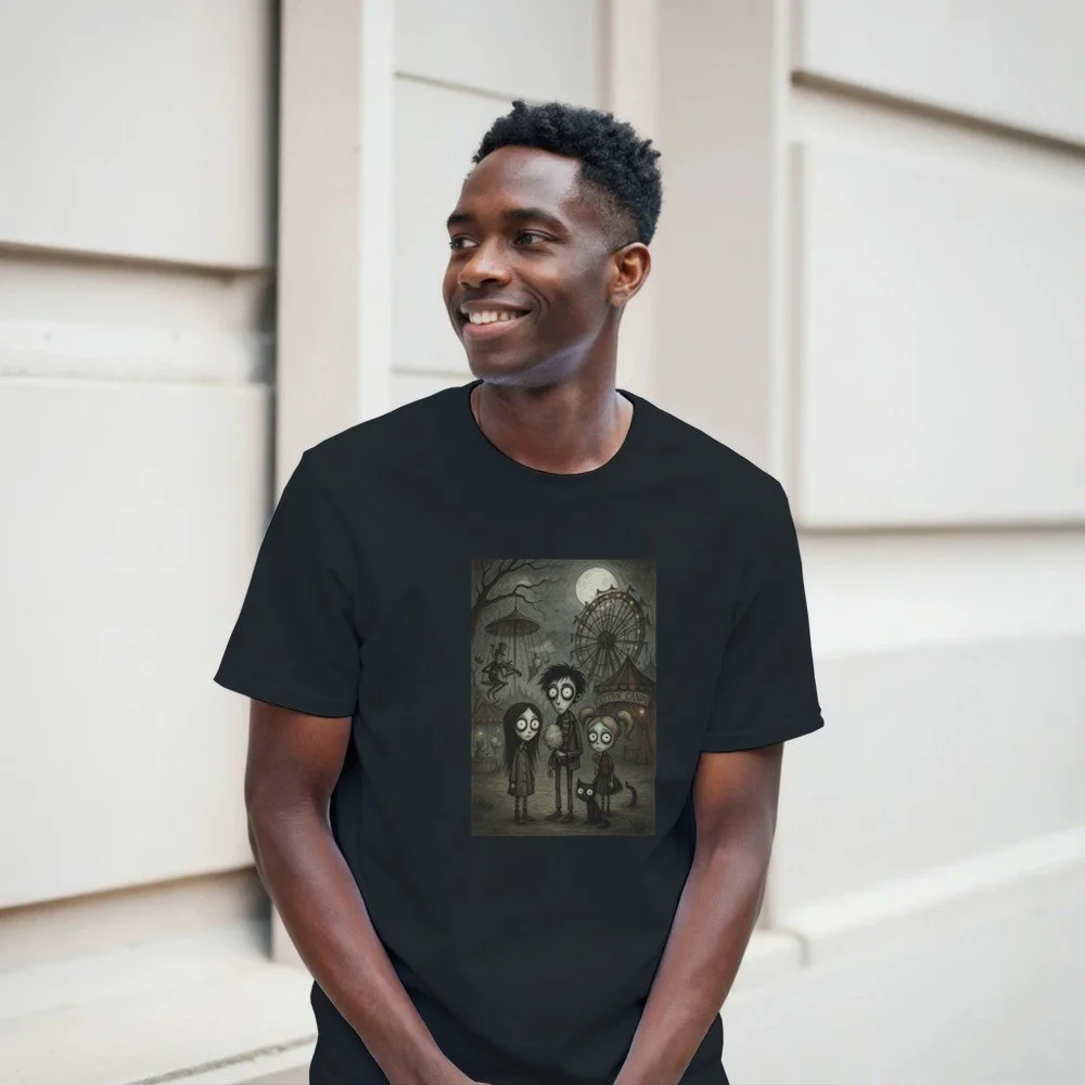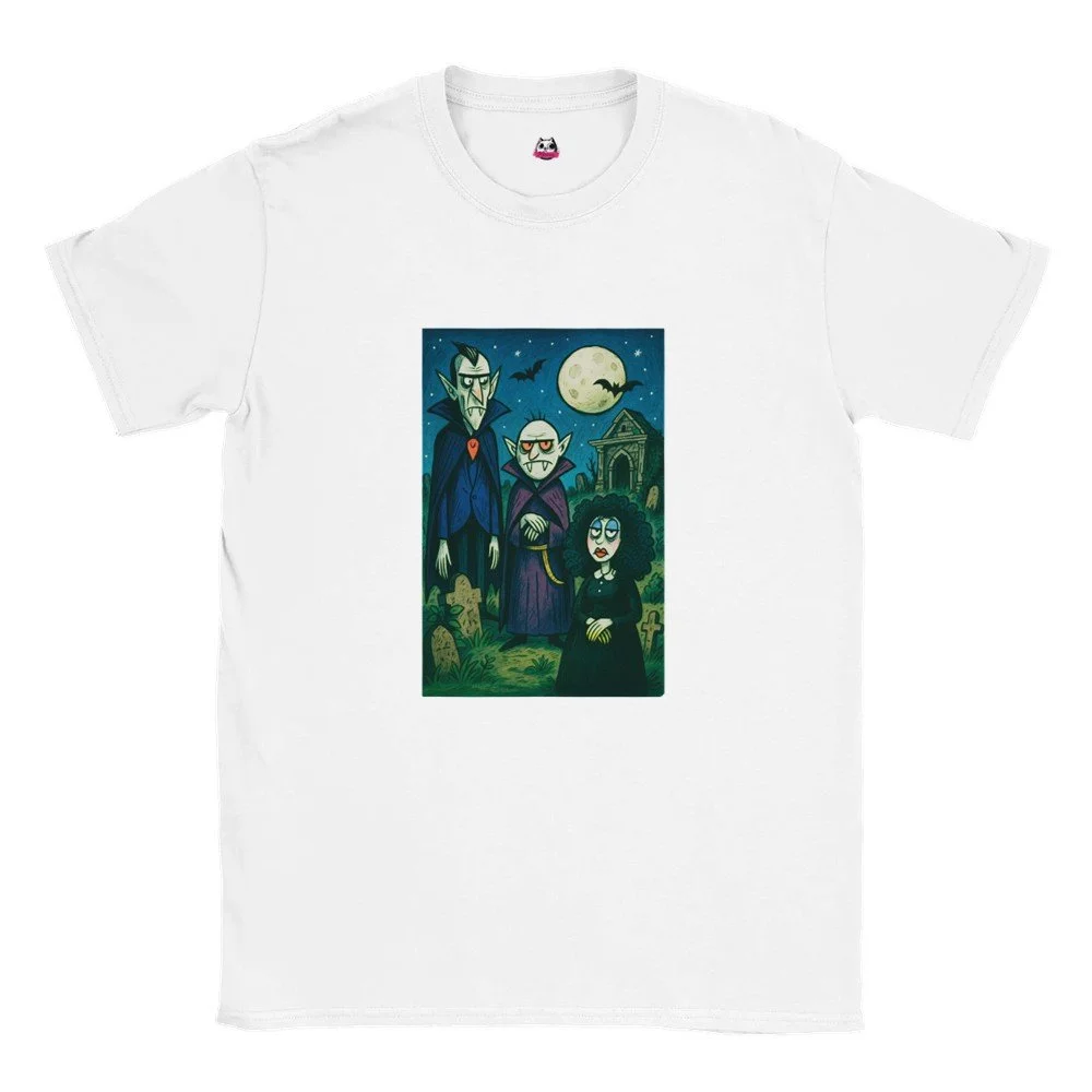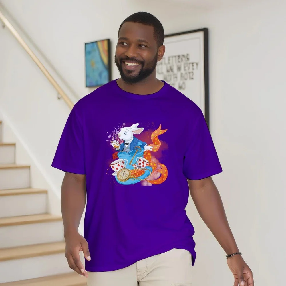 Ein echter Hingucker für alle, die dunklen Stil mit Humor verbinden! Dieses T-Shirt zeigt einen stilisierten Skelett-Gentleman im violetten Frack und Zylinder, elegant, charmant und ein bisschen unheimlich. Der grafische Look mit schwarz-weißen Streifen verleiht dem Design eine moderne, individuelle Note.