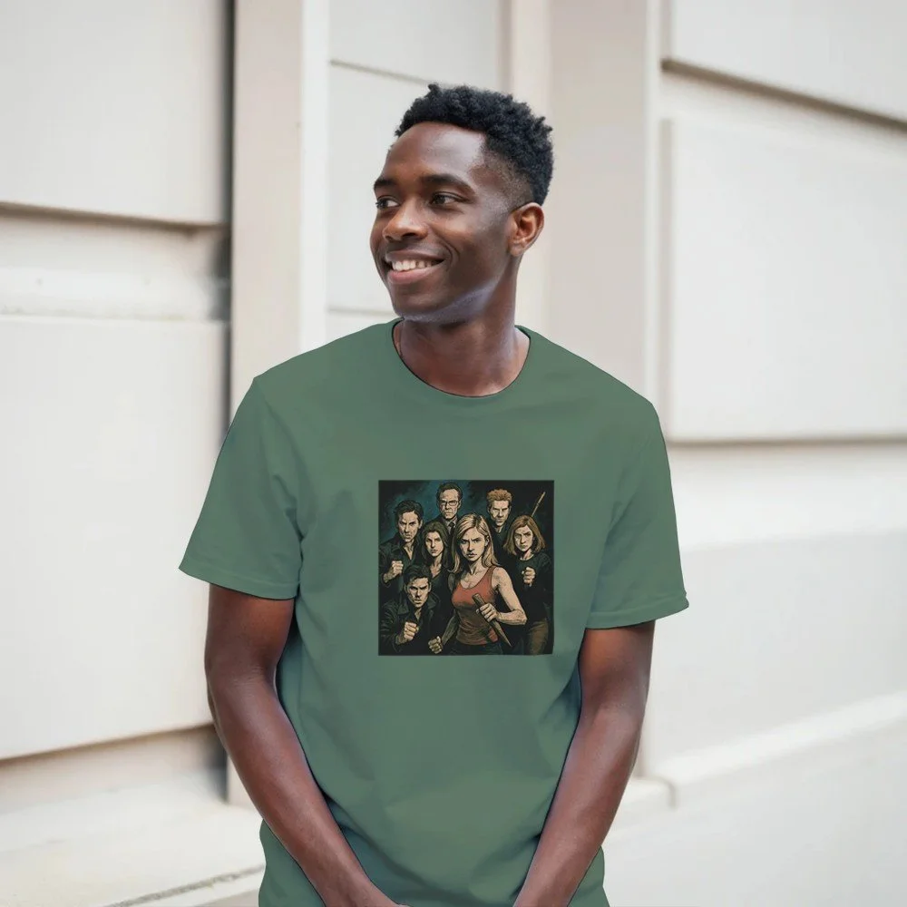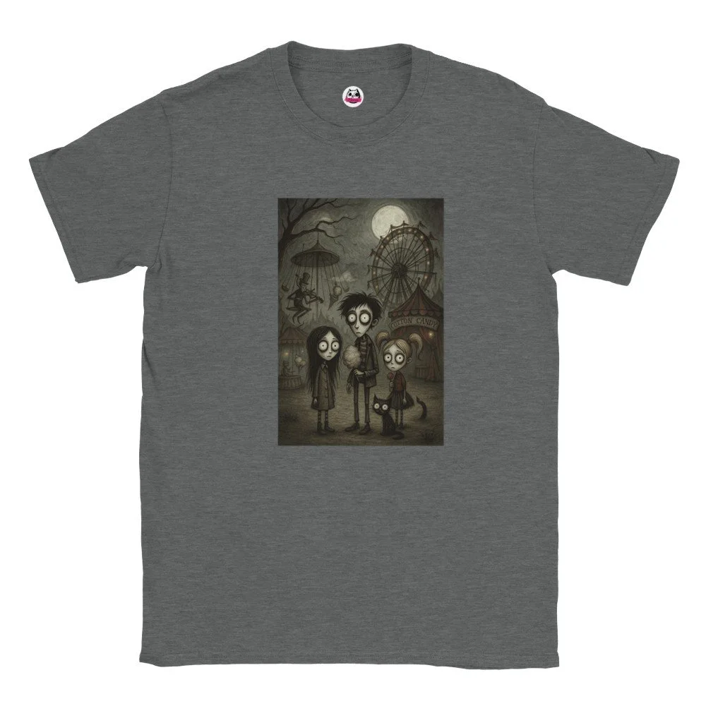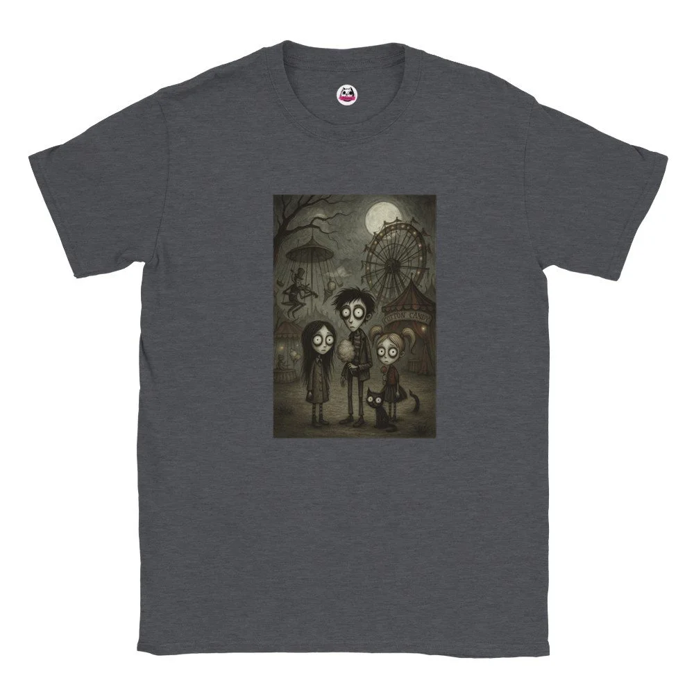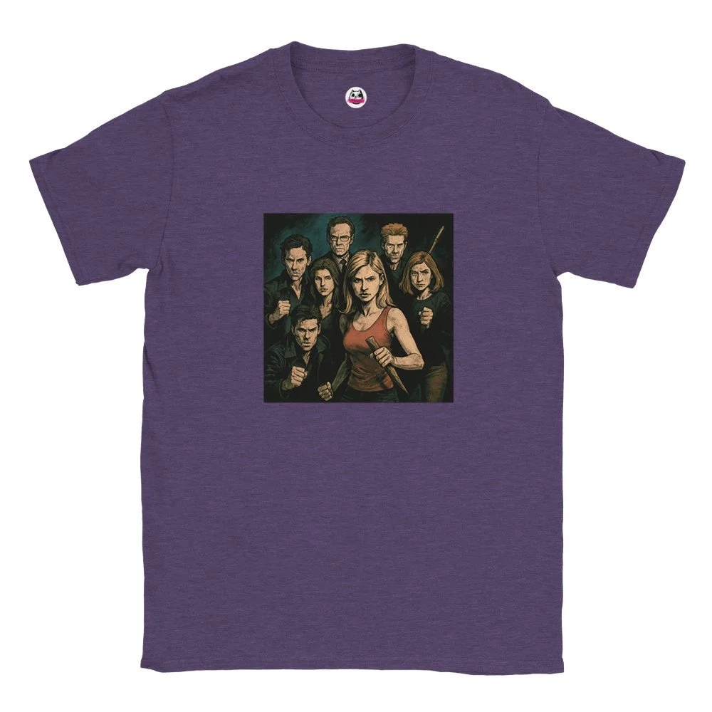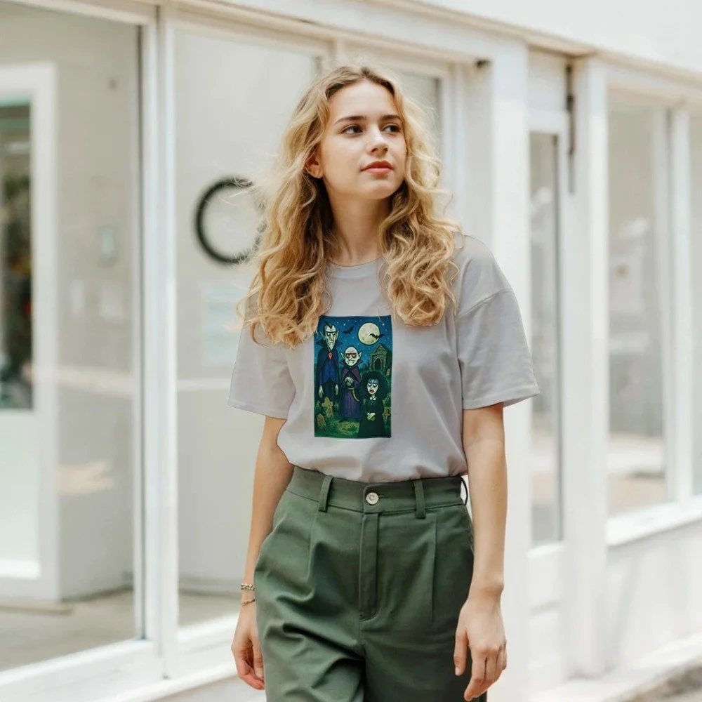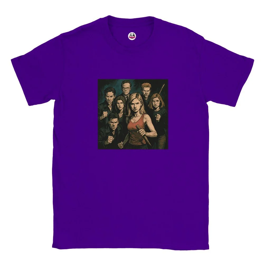 Ein echter Hingucker für alle, die dunklen Stil mit Humor verbinden! Dieses T-Shirt zeigt einen stilisierten Skelett-Gentleman im violetten Frack und Zylinder, elegant, charmant und ein bisschen unheimlich. Der grafische Look mit schwarz-weißen Streifen verleiht dem Design eine moderne, individuelle Note.