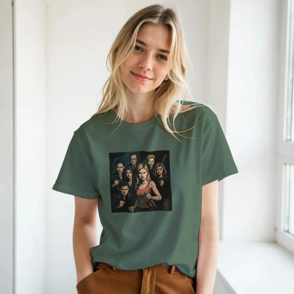 Das T-Shirt überzeugt mit einer hohen Maschendichte, die eine glattere Druckoberfläche garantiert. Die verschweißten Nacken und Schultern versprechen Langlebigkeit und Stabilität.