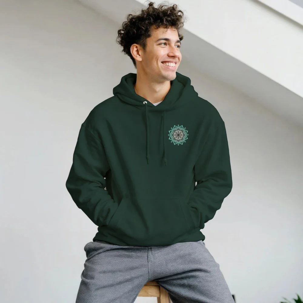 Ein Hoodie aus schwerem Mischgewebe. Hergestellt aus einer weichen Mischung aus 50 % Baumwolle und 50 % Polyester.