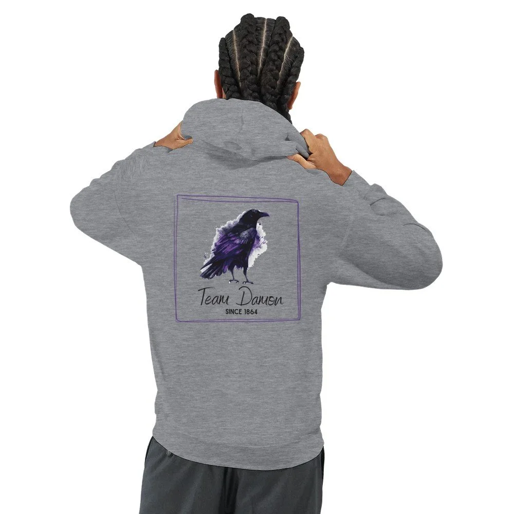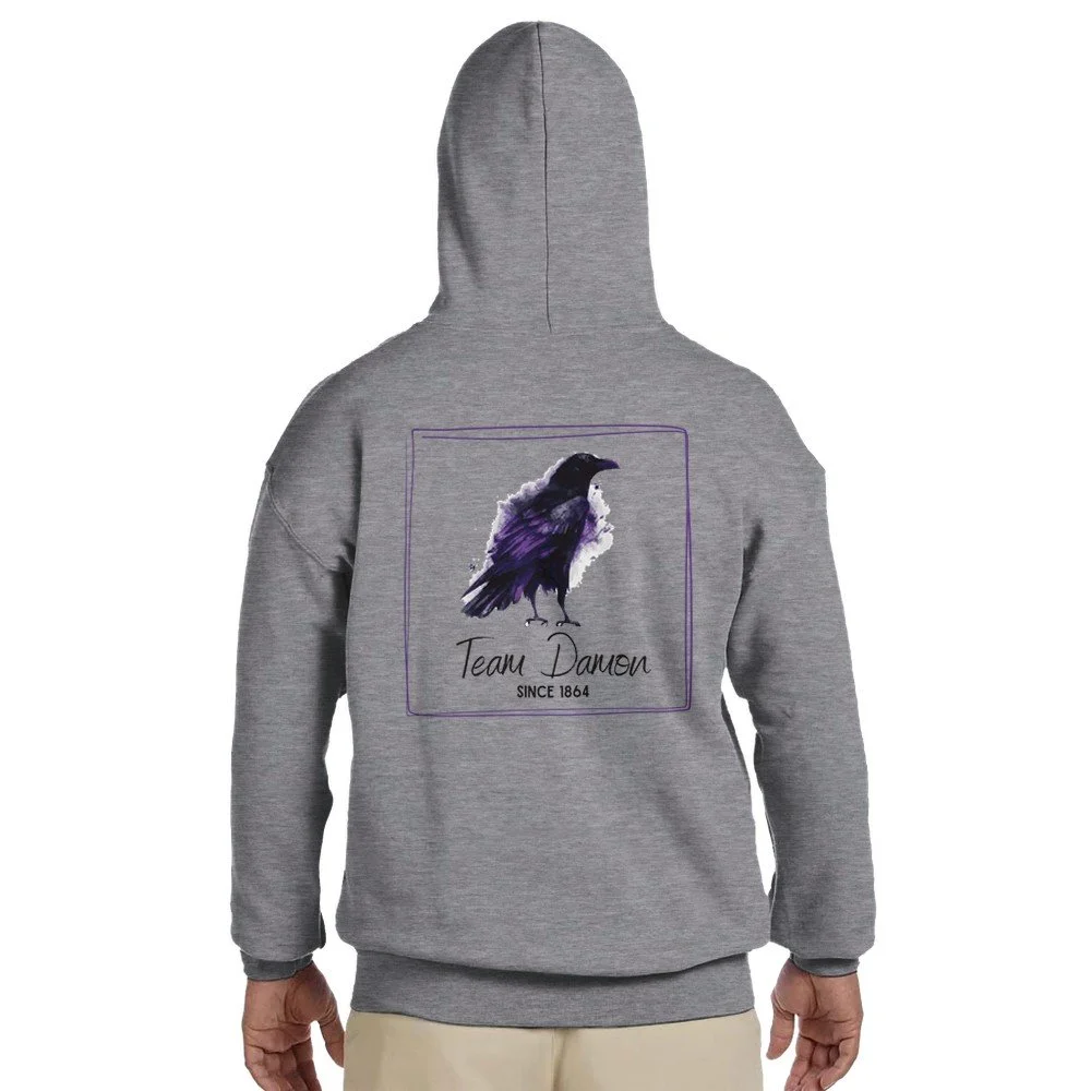 Perfekter Hoodie für alle Fans: „I was feeling epic“ auf der Front und „Team Damon“ Backprint mit Rabenmotiv.