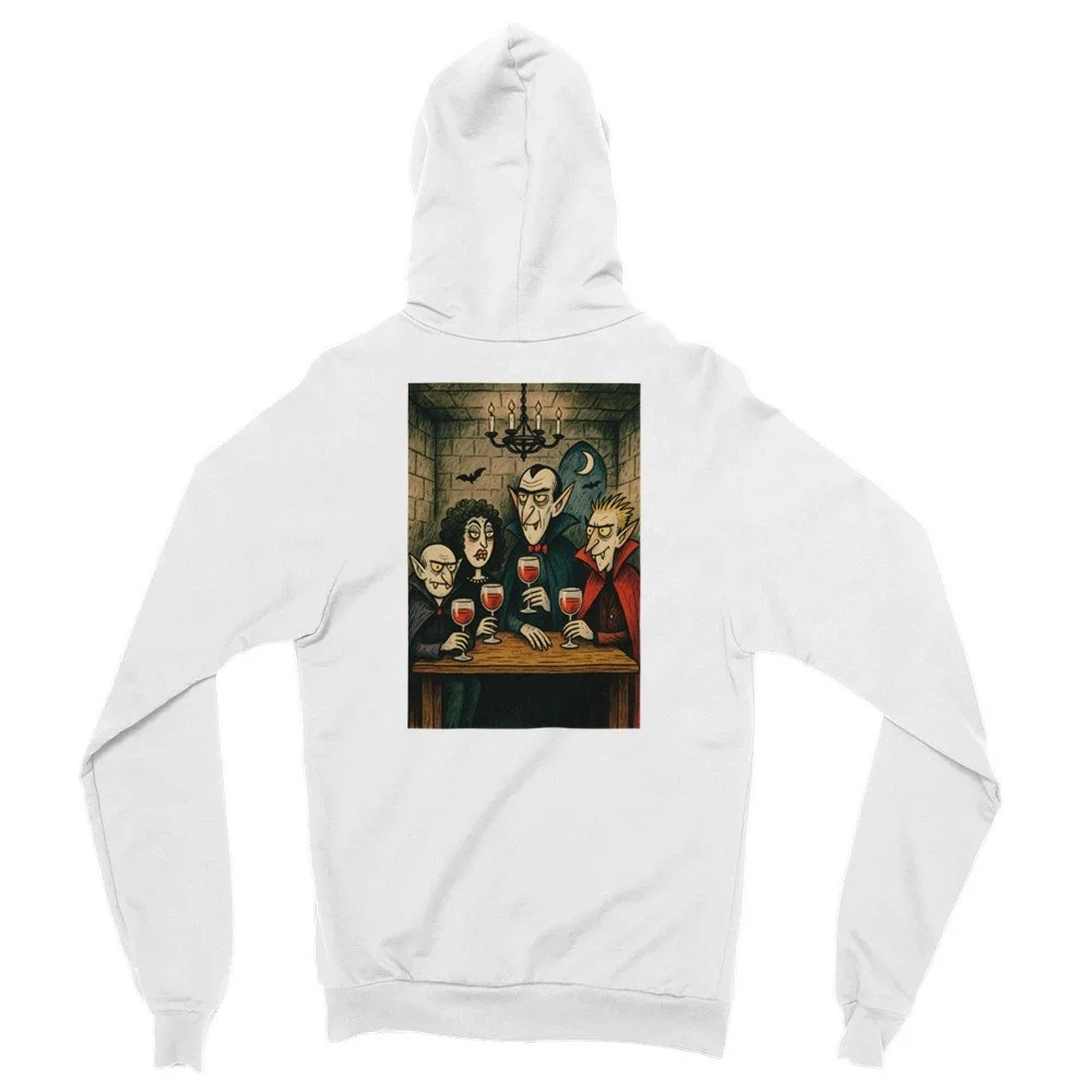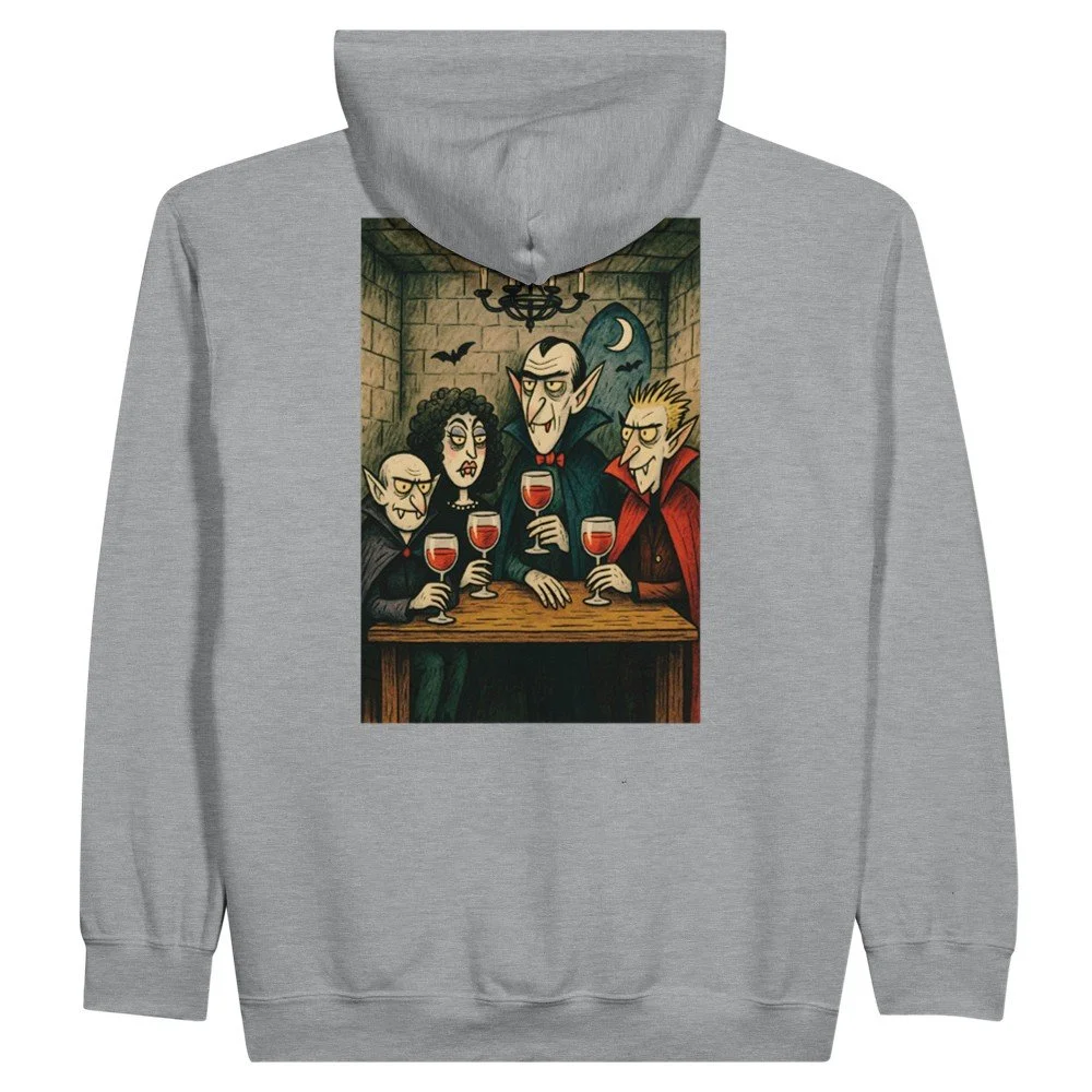 Dezentes Brustmotiv, witzige Vampir-Gesellschaft hinten.
